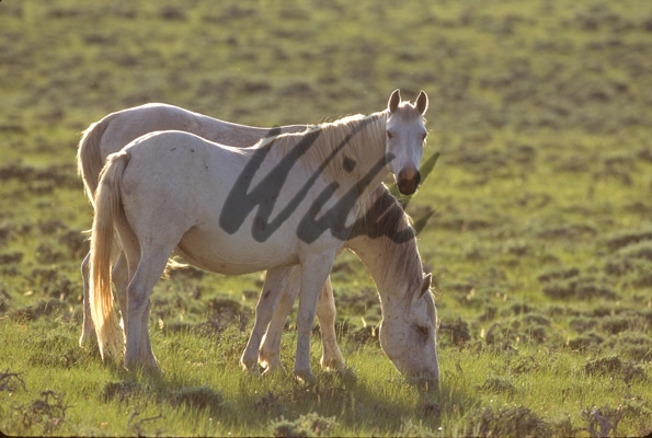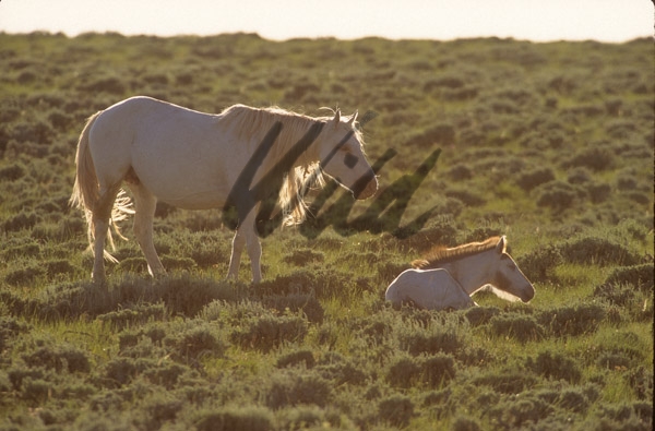 - Backlit Wild Horse foal and mare with long tangled mane - WY HS00635-12111C