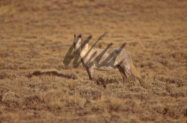 - Gray Wild Horse on sage covered prairie of Central Wyoming