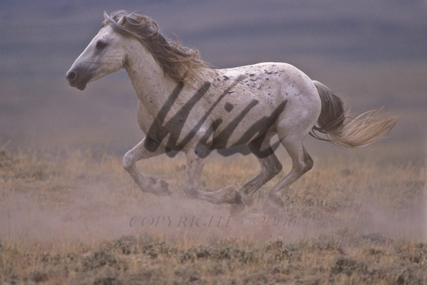 - Gray Wild Horse running full speed with mane and tail flying