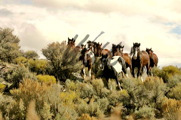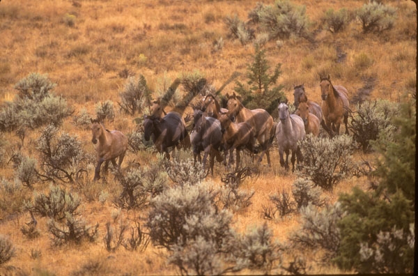 - Wild Horse herd running full speed across Wyoming hillside