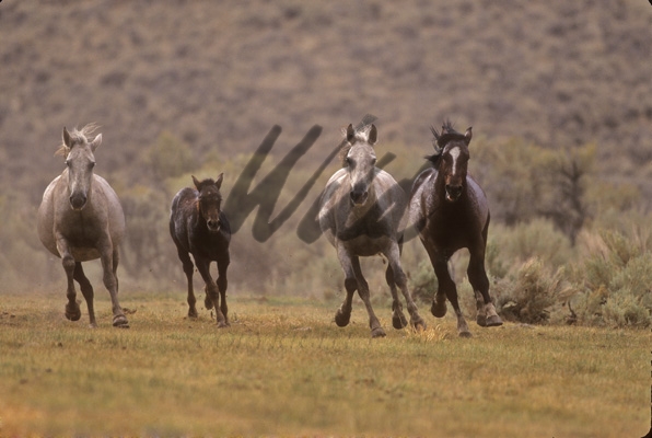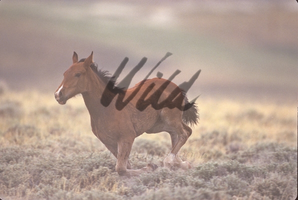 - Wild Horse foal running to keep up with fleeing herd