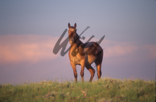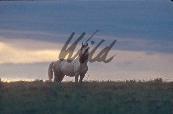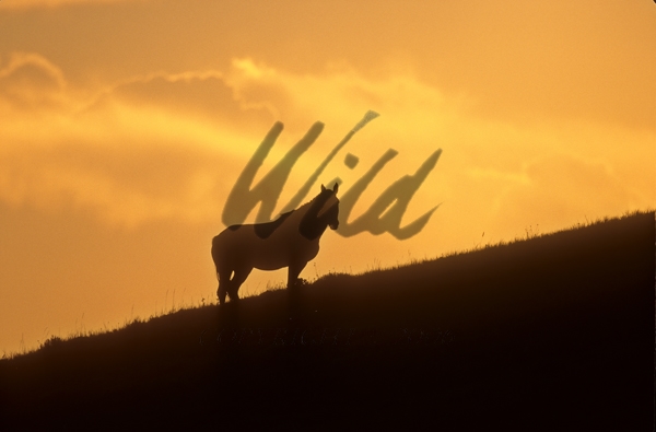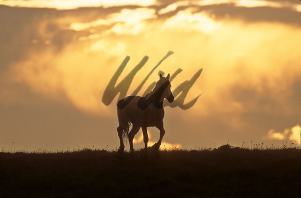 - Wild Horse on skyline against Wyoming sunset