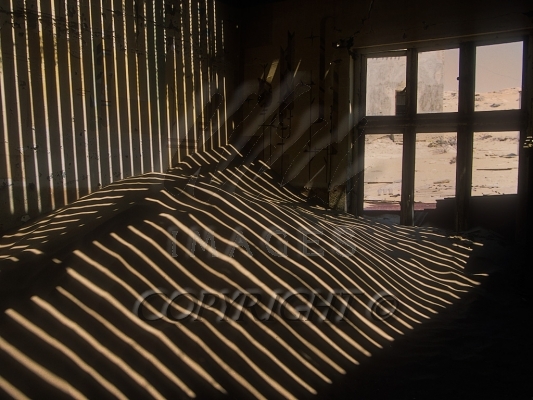 - Patterns from sunlight wash a sand mound in a Kolmanskop house