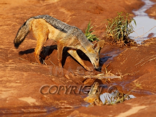 - Black backed jackal drinking from a rainwater puddle _GS19160