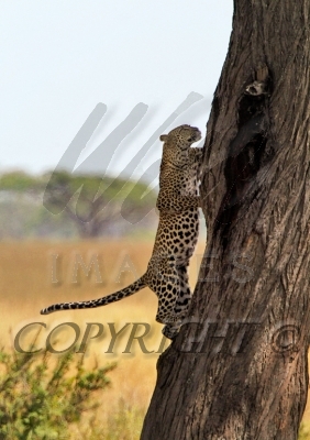 - Leopard climbing into Umbrella Acacia Tree _MG_5257