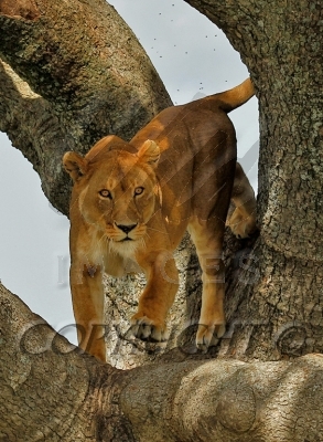 - Lioness coming down from her Sausage Tree perch _GS13734